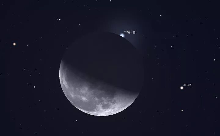 2017年11月11日23时左右,将会发生月掩狮子座轩辕十四的天文现象。