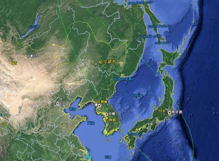2017年11月11日,月掩轩辕十四掩食带界限图。底图来自Google Earth。