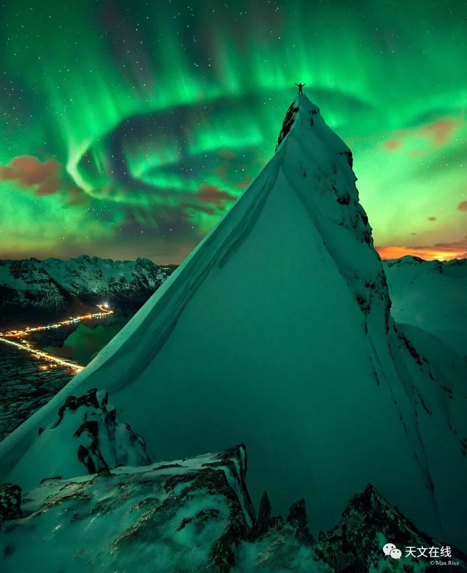 说明: 看见极光时请举手。虽然心里悬著这个指示,但是连续二个晚上基本上见到的只是云朵。在第三晚重登顶峰时,天空不但澈澄澈,而且被满天精采的极光妆点得晶亮。高举著胜利的双手,因为除了耐心和经验终于得到回报之外,使用所拍下的3张照片,也得以组合出这幅主题影像。影像里的山峰,位在北挪威.Lofoten群岛.Svolvear镇附近的Austnesfjorden 峡湾。拍照的时间则是在2014年的年初。虽然太阳目前处在极小期附近,因此最近少有表面活动,然而一些位在日冕高层的日冕洞,在过去的数个月之中,还是为我们带来许多精采的极光活动。