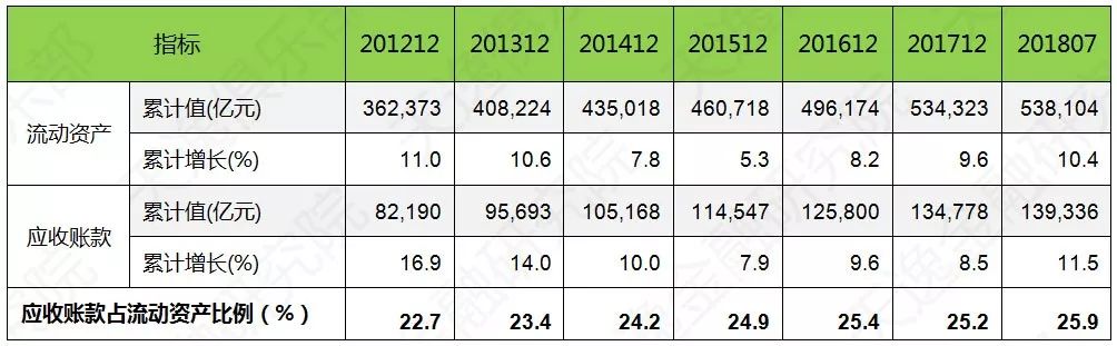 规模以上工业类企业应收账款分析(数据截止至2018年7月31日)