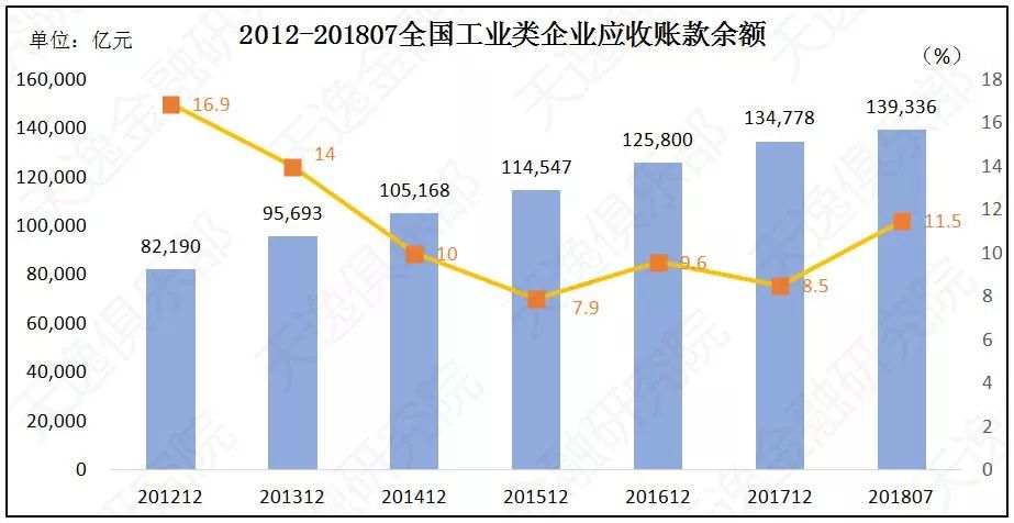 从前文分析来看,截止2018年7月我国规模以上工业企业的应收账款规模出现较大幅度的增长,一方面是由于我国经济复苏缓慢,工业企业经营流动性问题一直存在;另一方面是由于中小企业在我国经济发展中的地位提升,中小企业的融资难、融资贵的问题没有根本解决。