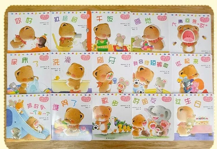 《小熊宝宝》系列绘本包括《你好》、《过生日》、《拉粑粑》、《睡觉》、《好朋友》《排好队,一个接一个》、《睡觉》、《我会穿短裤》、《尿床了》、《谁哭了》、《大声回答“哎”》、《收起来》、《散步》、《午饭》、《洗澡》、《刷牙》15本。这套丛书涵盖了幼儿生活的各个方面:吃饭、穿衣、洗澡、刷牙、拉粑粑、交友、问好等方面,非常适合低幼儿童的亲子阅读,并且有助于培养宝宝的良好行为习惯。