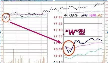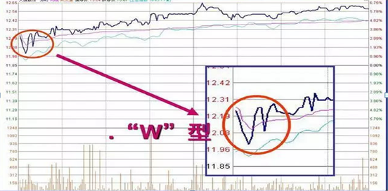 B.“W”型走势:与“N”型走势类似——只是多了一次探底,在分时形态上形成一个“W”型走势。