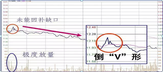 低开后股价继续走低,或快速上冲到缺口附近再次回落,没能回补缺口,形成一个“V”形或倒“V”形走势,成交量呈现极度萎缩,或极度放大之势,内盘是外盘的一倍以上,此种开盘全天看跌。