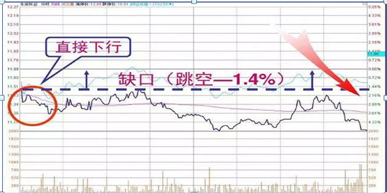 注意:在有跳空缺口的开盘中,开盘后有没有立刻回补缺口的动作以及该动作的力度大小,是全天走势方向是否明朗的重要标志。如果跳空开盘后没有任何回补动作,那么全天的股价走势必然会沿着跳空的方向运行。