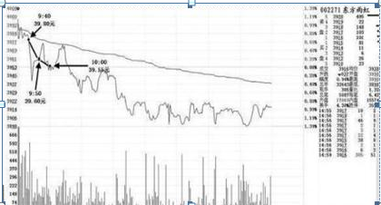 (7)如果9:40、9:50两条线都比开盘价高,而另一条线比开盘价低(俗称开盘三线两上一下),表明当天行情买卖双方皆较有力,行情以震荡为主,多方逐步占据优势并向上攀升。