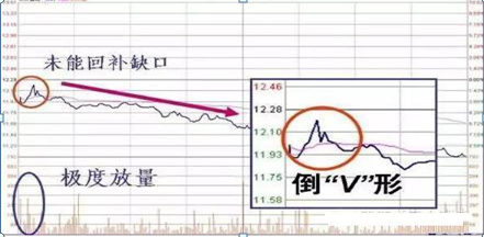 即低开后股价继续走低,或快速上冲到缺口附近再次回落,没能回补缺口,形成一个“V”形或倒“V”形走势,成交量呈现极度萎缩或极度放大之势,内盘是外盘的一倍以上,此种开盘全天看跌。