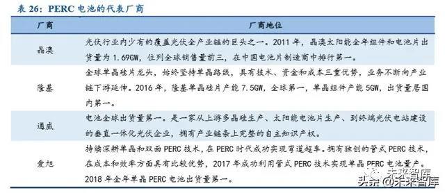 PERC 电池竞争格局的演化呈现出两个特点:1)产能中心从海外向国内转移,国内 PERC 电池厂商逐渐占主导。以通威、爱旭为代表的电池厂商,逐渐替代 Solar World, SolarTech 等电池厂商,而产业化早期,产能和销量均位列领先地位的台湾厂商也逐渐被边 缘化。2)在国内 PERC 电池发展过程中,技术从少数厂家对外逐渐形成扩散,技术领先的 产业链龙头优势明显。第一阶段,以晶澳、中电光伏为首的厂商掌握了 PERC 的核心技术,并率先实现量产;第二阶段,产业链龙头企业迅速跟进,加码 PERC 电池,而新晋玩家也开 始押注 PERC;第三阶段,电池头部厂商利用自身经营优势进一步扩大产能,少数新秀企业 晋身第一梯队,最终实现弯道超车,行业集中度进一步提升。但回顾 PERC 发展的三阶段, 从晶澳到隆基、通威,再到爱旭和东方日升,无一不是技术领先的产业链龙头企业。而与 PERC 相比,异质结电池对于技术的要求更高,面临技术挑战更多,技术提效对于异质结的 推动作用更为显著。因此,在技术升级为主线的量产过程中,技术沉淀较少的新晋企业恐怕 较难突围。
