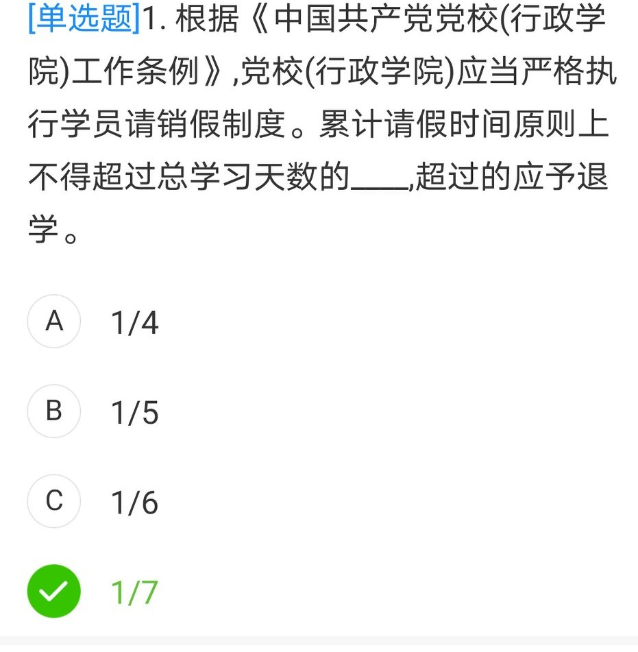 请假不超1/7 D,超过退学