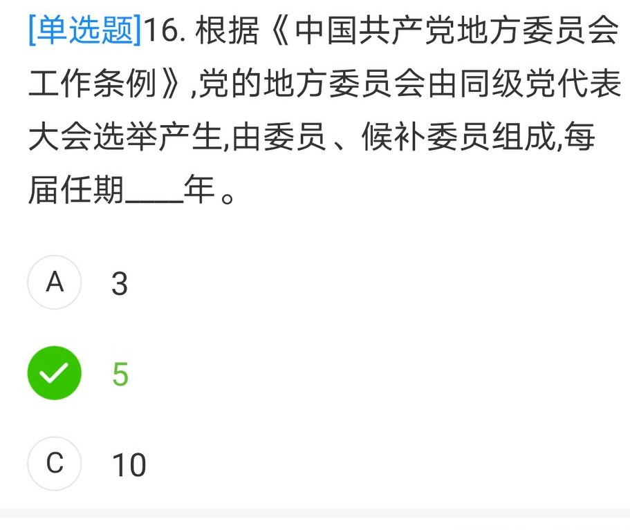 任期五年则为C
