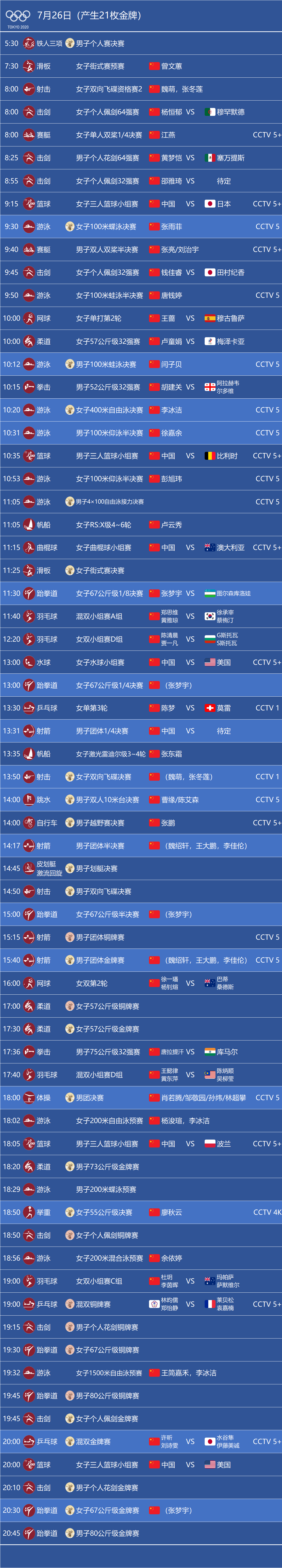 https://p6-tt.byteimg.com/origin/pgc-image/c747af494dcf40778eda02c00cb4b043?from=pc26日奥运看点:5夺金点!