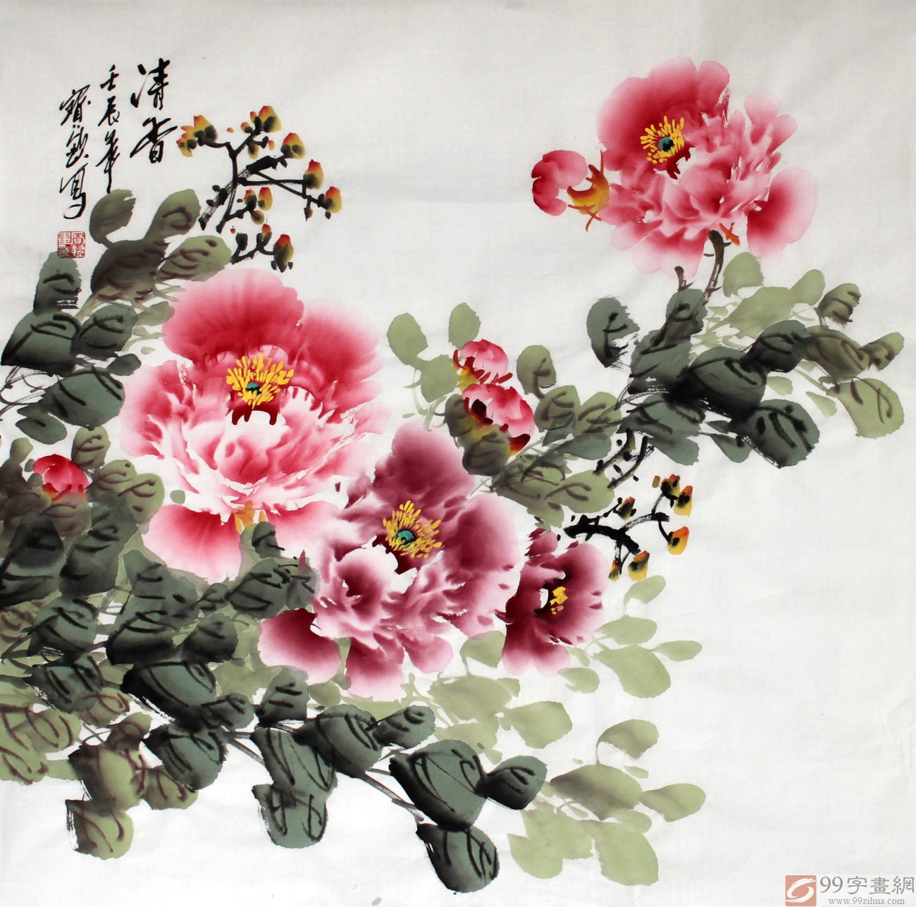 5.最后落款、盖章。至此,小写意牡丹画就完成了。