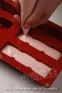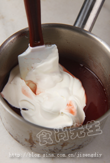 4:最后浆料冷却后再加入打发好的淡奶油混合拌匀。