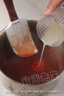 3:再加入泡软的吉利丁混合搅拌至胶体融化。