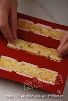 6:最后再在表面放上一块蛋糕底,送入冷冻柜中冷冻。