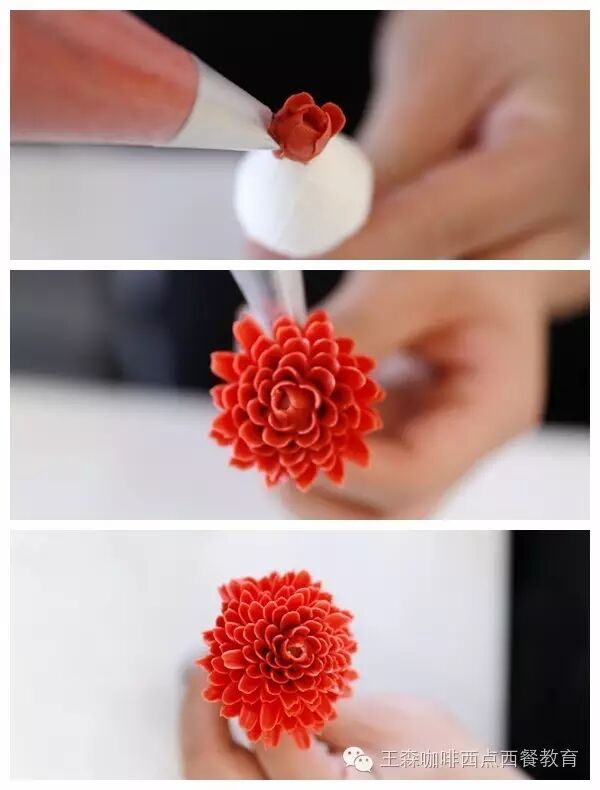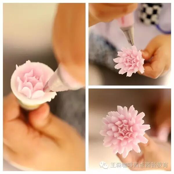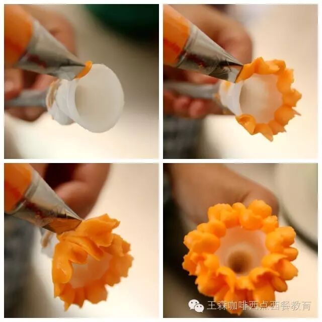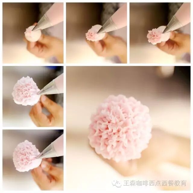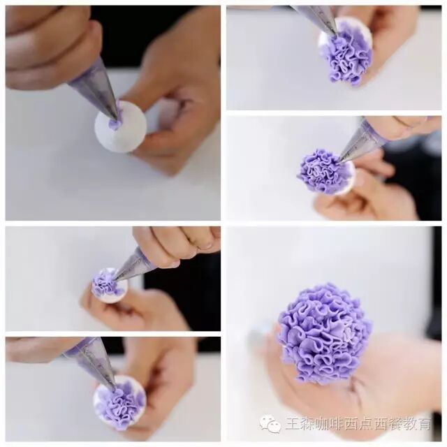 1.用康乃馨花嘴与米托垂直挤出花心。