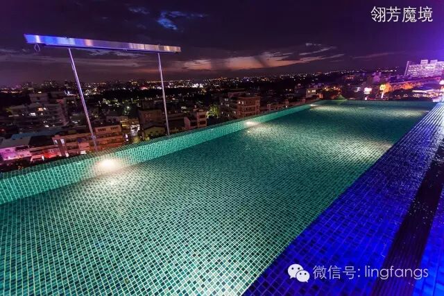 点上一杯鸡尾酒,从桃城茶样子顶楼的sky lounge放眼望去,整个老城景观尽收眼底,无边际的泳池,上可触及天空,远可延伸到老城。