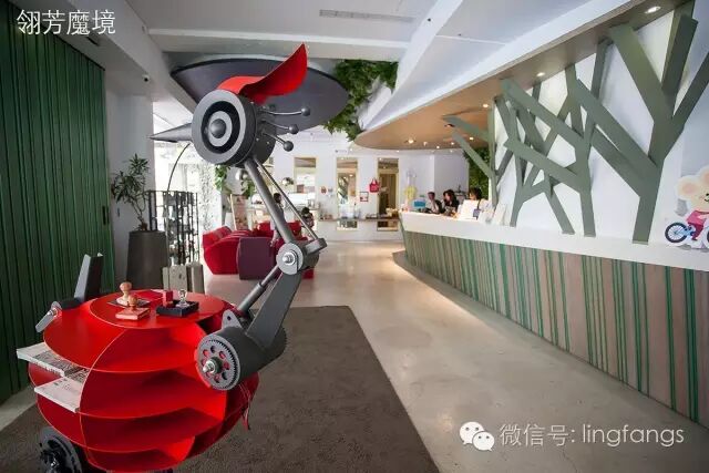 日本女性艺术家中村萌雕塑作品,描述人们内心的童真,因为大人世界的干扰而变得空洞丑陋,深有寓意的作品获得创始人的喜爱而收藏摆设于大厅中
