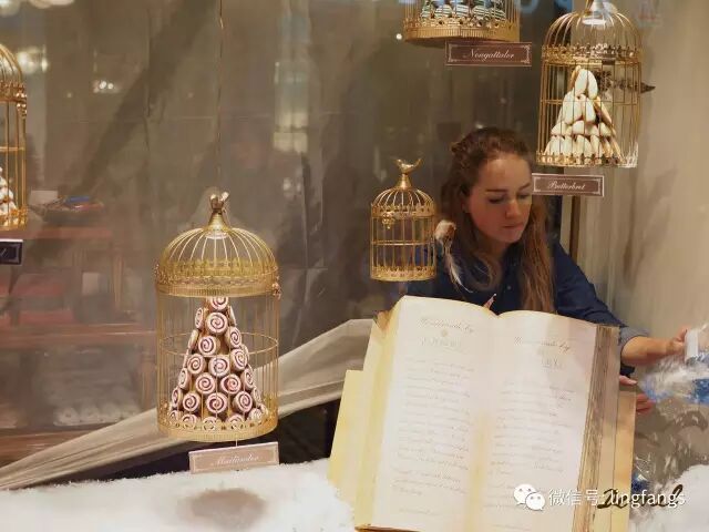 店里忙著为客人包裹花瓣糖当作圣诞礼物的店员,不过注意看一下,这花瓣糖的包装是绿色锻带,不是紫罗兰的紫色锻带,绿色锻带的是部分紫罗兰糖,但大部分是巧克力