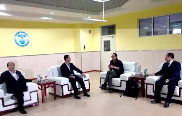 黑龙江省副省长孙尧(右2)亲切接见俞敏洪(右1)等北大企业界代表团成员
