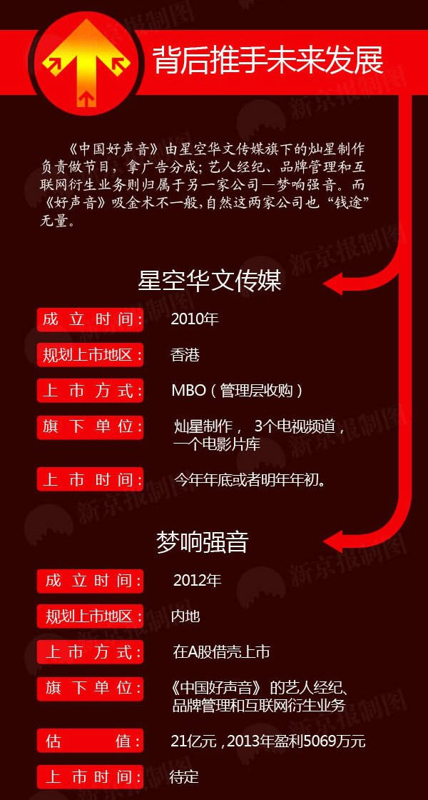 2天后,香港明报财经传出消息,《中国好声音》背后制作公司将要上市,这也成为了上述说法的最好注脚。