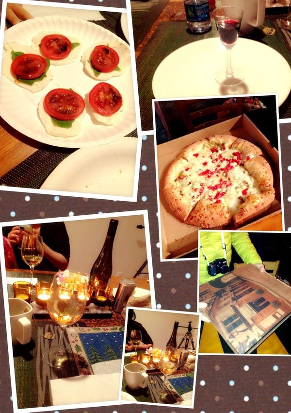 晚上我們喝紅酒 吃披薩 配上一些下酒菜 聊天 談心