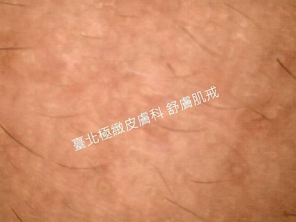 上述说法逻辑上没有错误,但实证却不能解决问题:既然只考虑「治标不治本」,当然就不可能摆脱成人痘。想要完美解答成人痘的核心问题,就要从科学的显微证据入手:首先,请读者看一下正常皮肤的结构。当你使用50倍皮肤镜观察正常皮肤,就可以看到它的显微结构纹路清晰完整,毛孔没有堵塞,而且都长出了毛发。(毛孔就是用来长毛的,油孔就是用来出油的;对吧!)