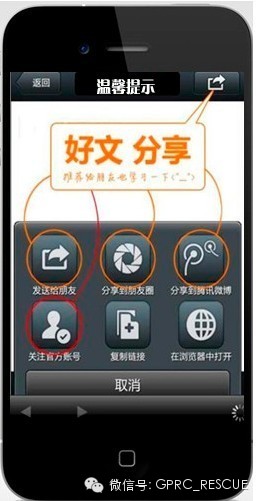 亲爱的读者,如果您感觉这篇文章对您的朋友有帮助,请点击屏幕的右上角分享到您的朋友圈,如果您喜欢我们的公众平台,请点击文章标题下面的【全球泛户外救援学院】关注我们,或通过查找【全球泛户外救援学院】,【GPRC_RESCUE】关注我们,
