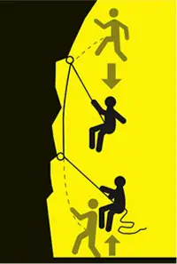 当攀爬者在线路较高的地方发生冲坠后,你可以配合攀爬者向下拉绳的动作,利用体重向后坐,再迅速收绳。如此反复就可以帮助他(她)返回合适的高度。在仰角地形也可以用这种方法帮助攀爬者返回。要点是当他(她)拉绳子的时候保持绳子完全受力。