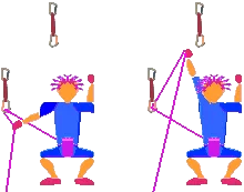 提醒攀爬者正确的扣入绳子和快挂也是你的职责,如果他(她)出现以下错误情况:Z字型挂绳(绳子从低处保护点拉起扣入高处保护点)如图: