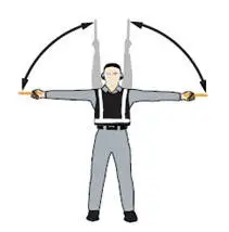 双臂水平外伸,掌心朝上,向上招手,双臂移动速度表示上升率大小 |
