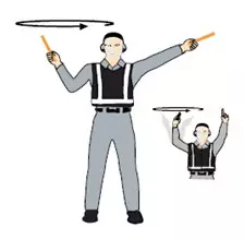 右臂举于头上水平画圈,同时左手指向发动机 |