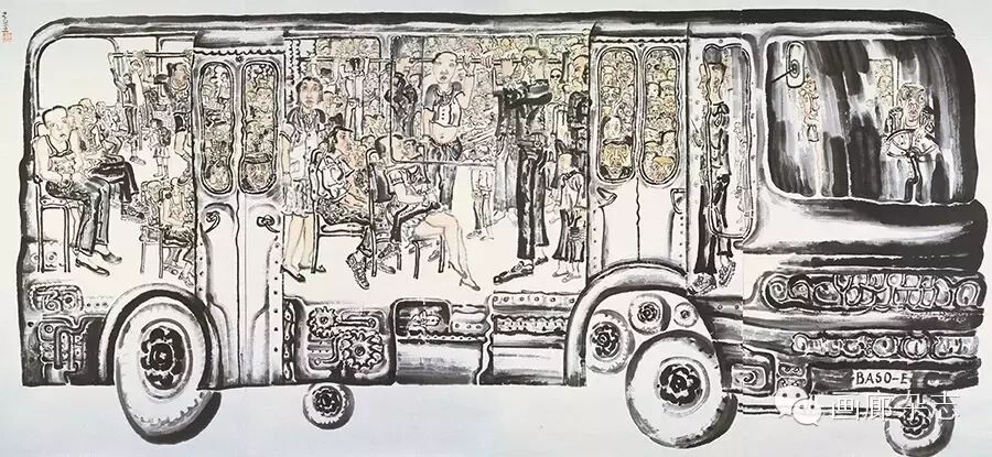 作品解析:《大轿车》,有关都市问题的思考和表现始于1 988年前后,这幅作品是我关注都市题材由对景观兴趣的吸引到”城市心象”表达的乏续。