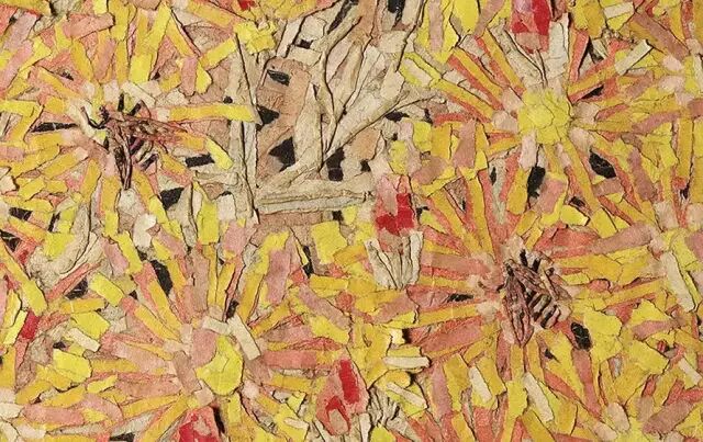 为了让图画变得有立体感,他把彩色纸粘贴起来,或者从杂志、广告传单中选择有颜色的部分进行剪贴,进步之快使专家们都为之瞠目。