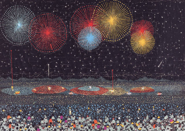 山下清最爱看庙会、杂技,尤其喜欢看烟火。为了看各地的烟火,无论多么远,他都会赶着去。