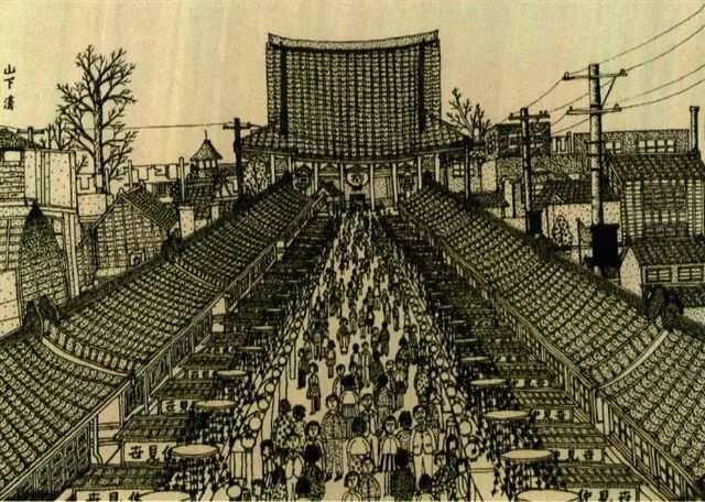 山下清从纸的右下角开始画起,先画公园里常见的铁丝网和废纸篓,随着画的进展,在纸中间出现了繁华的街道,他规规矩矩地画上了许多广告招牌架和林立的招牌。