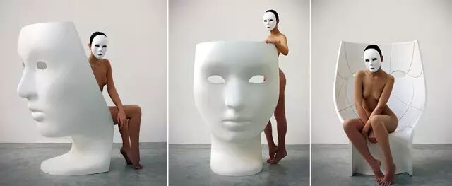 无论放在任何空间,你的视线都不会从她身上移开,忍不住要走近听她倾诉。一人高的面具背后是浑然自成的扶手椅,恰到好处的高度和宽度,能将使用者完全包覆