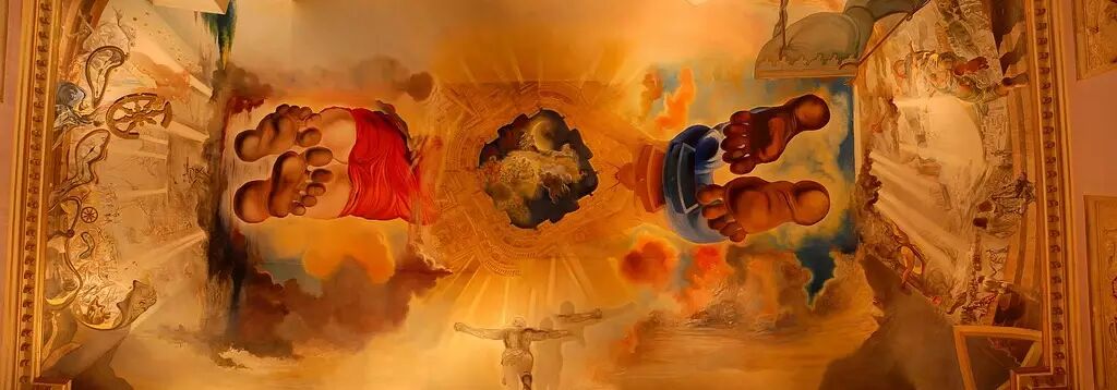 壁画“风之宫”的灵感来源于Joan Maragall 的诗歌《风之宫》,是达利在Portlligat海湾的家中所作,后来他攀着巨大的脚手架才将其彻底完成并放置在博物馆。这幅画中颇有人生梦想中的田园牧歌的意味,最突出的是达利和Gala的两双大脚。