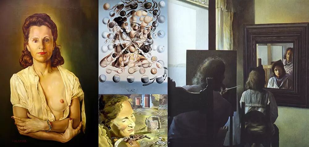 大厅与半圆形花园被一扇巨大的落地窗隔开,厅内拱廊中间的画作暗藏玄机,达利用同一幅画作展示了两个截然不同的画面——近看,Gala的裸体背影望向地中海冉冉升起的太阳。但当我后退20米,看到的则是美国总统林肯的肖像。