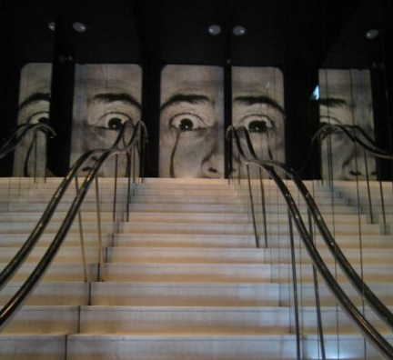 达利珠宝馆入口位于博物馆的侧面,很不起眼。穿过丝绒帘子,走入幽暗的展厅,迎接你的是达利圆睁的双眼,如此怪诞的表情会让你随之一震,难道达利的珠宝作品也是惊世骇俗之作吗?