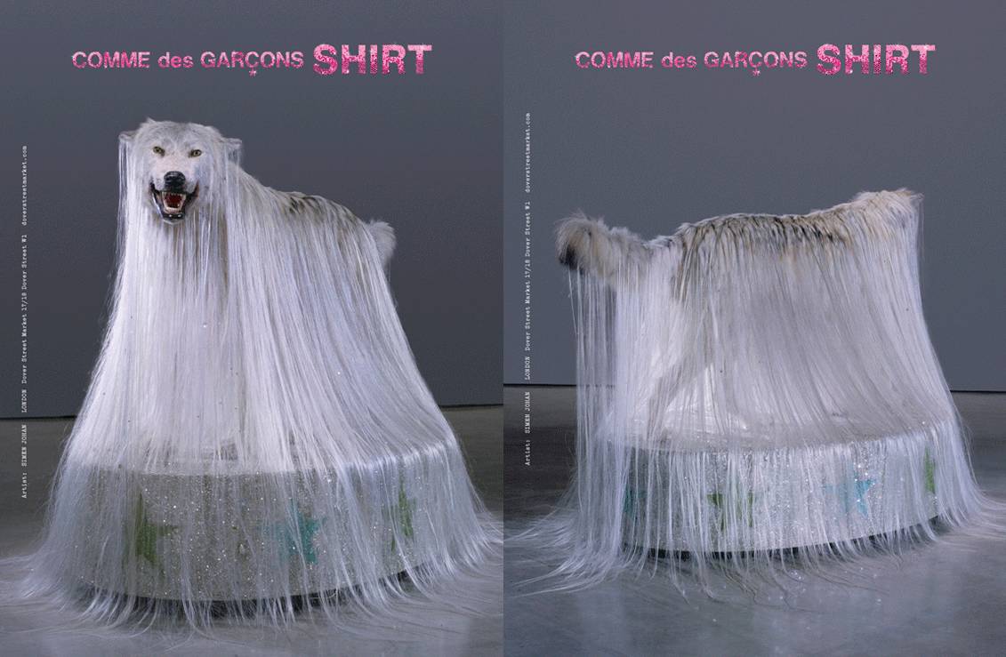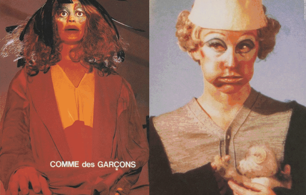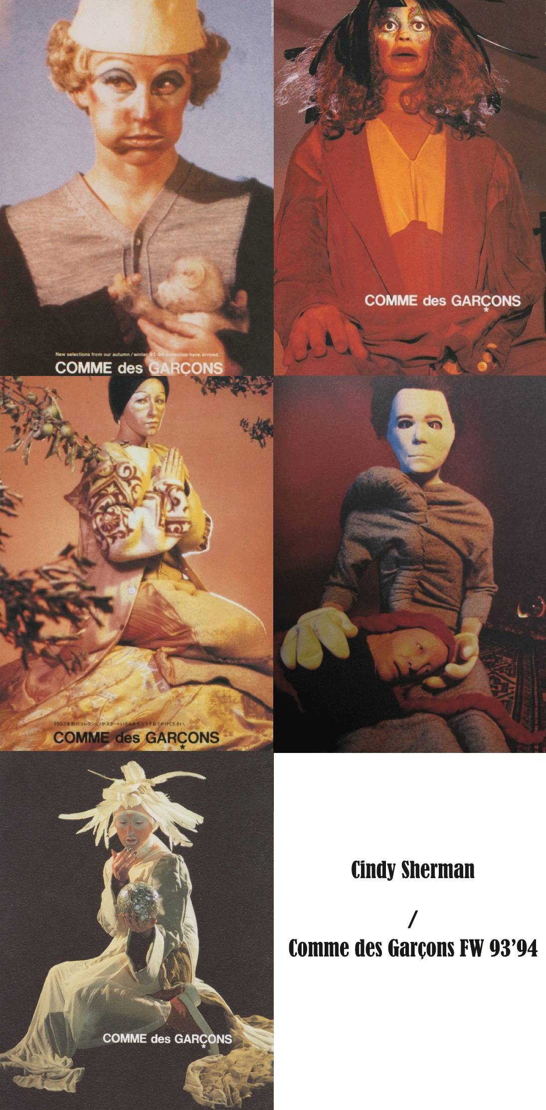 川久保玲在这之中扮演了极具聪慧的创造者和破坏者,她拒绝了对服装、店内装潢和陈列最传统的诠释方式,取而代之的是她仿佛异教徒般的广告和与世界抗衡的时装秀。两人的合作仿佛命中注定,Cindy Sherman化身鬼魅的小丑用让人过目不忘的影像反抗现实。