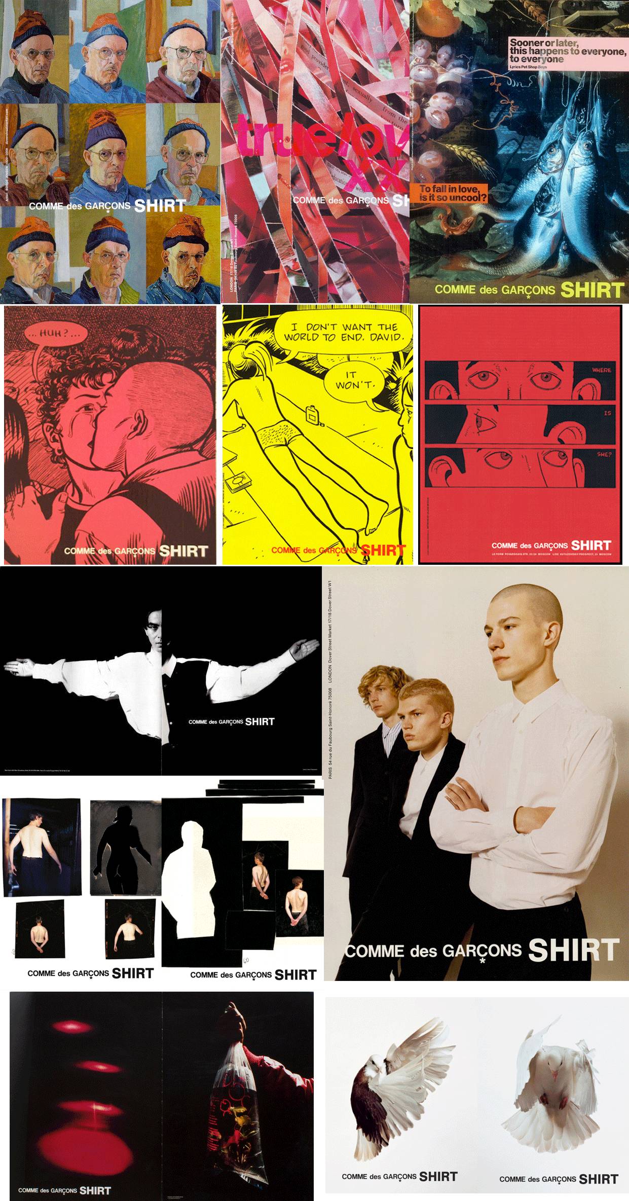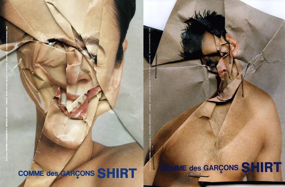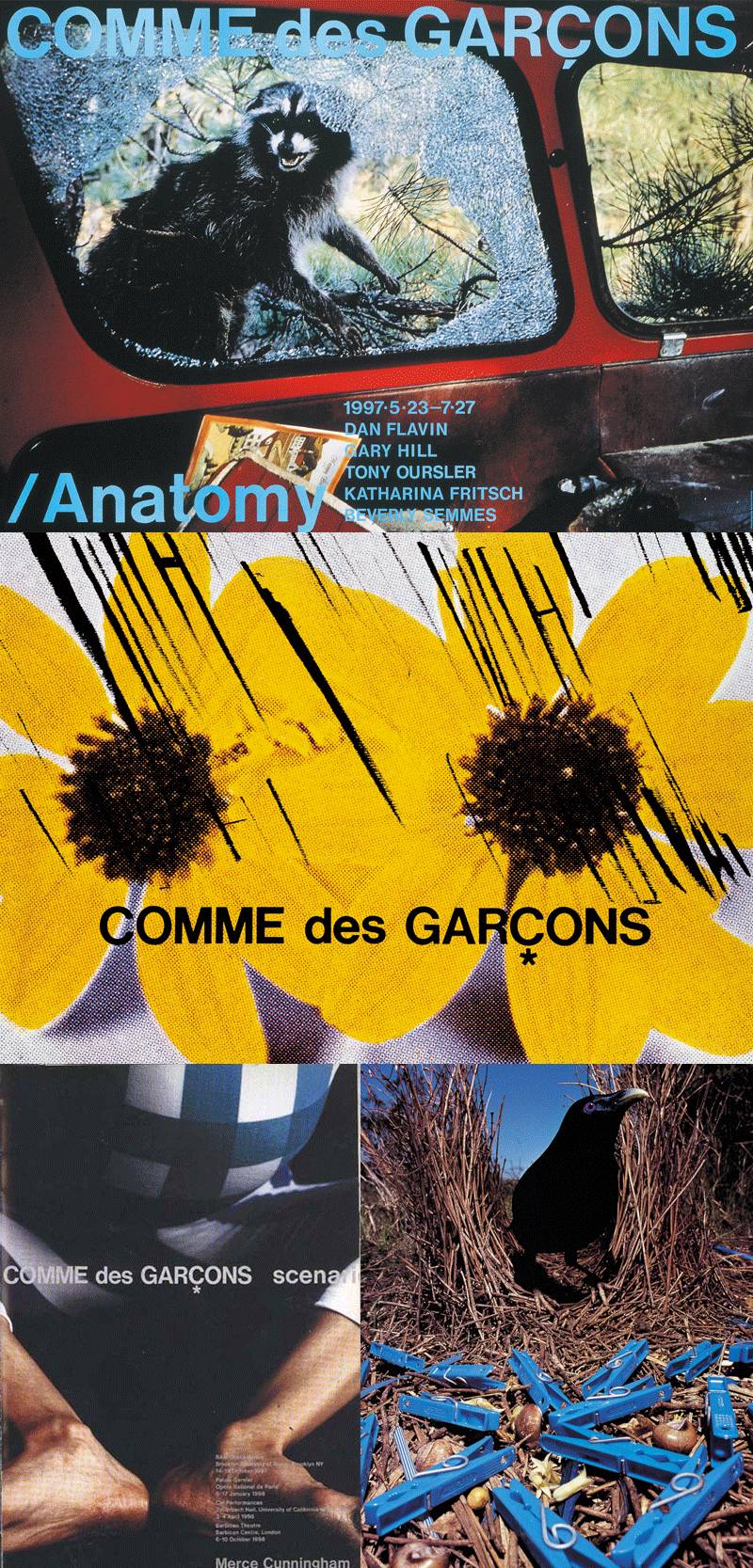 Comme des Garçons用当时已过世的美籍匈牙利裔摄影大师André Kértesz的作品作为1988年的广告。另外川久保玲为品牌出版了半年刊杂志《Six》,名字取义“第六感Sixth Sense”。这本A3大小的杂志里少有文字,更没有品牌产品的介绍;它呈现的是启发灵感的图片及绘画,旨在分享有趣的想法,以此表达每一季的愿景。