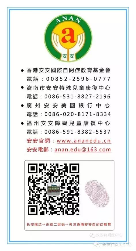 公告:“安安自闭症中心”微信订阅号已升级为微信公众服务号,每月仅有四次多图文消息推送,每次均有最新的原创精品文章,敬请持续关注。