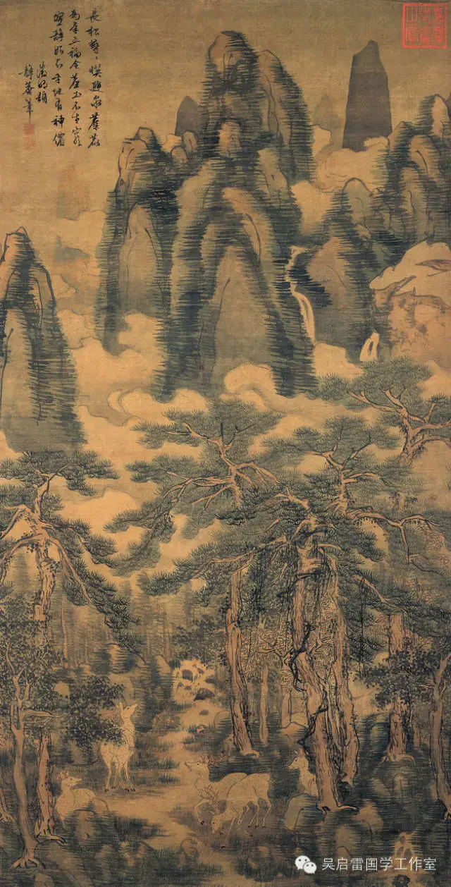 12、戴进 长松五鹿图 绢本设色 纵142.5 横72.4公分 台北故宫藏