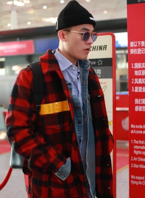欧豪衬衫牛仔+格子衫现身机场,这才是深秋的正确打开方式