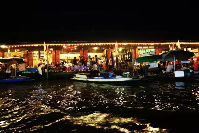 当华灯初上,泰式情歌响起,坐船去看萤火虫归来之时,安葩洼水上市场又是另一番景象。