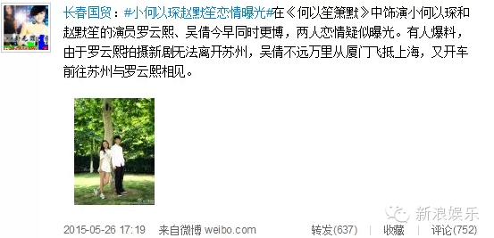 吴小美女貌似素去探班罗云熙啦~蓝后两人就一前一后发微博,完全是夫唱妇随滴节奏啊!