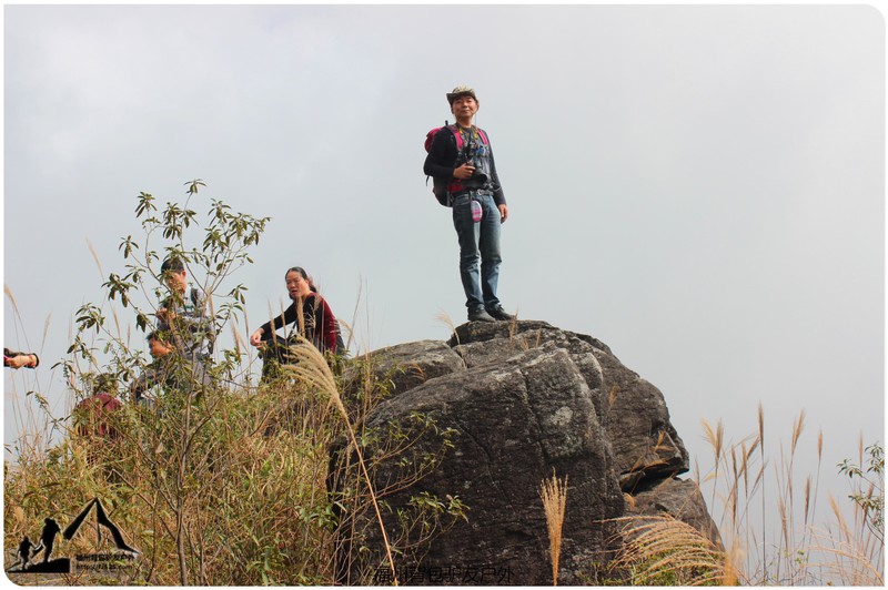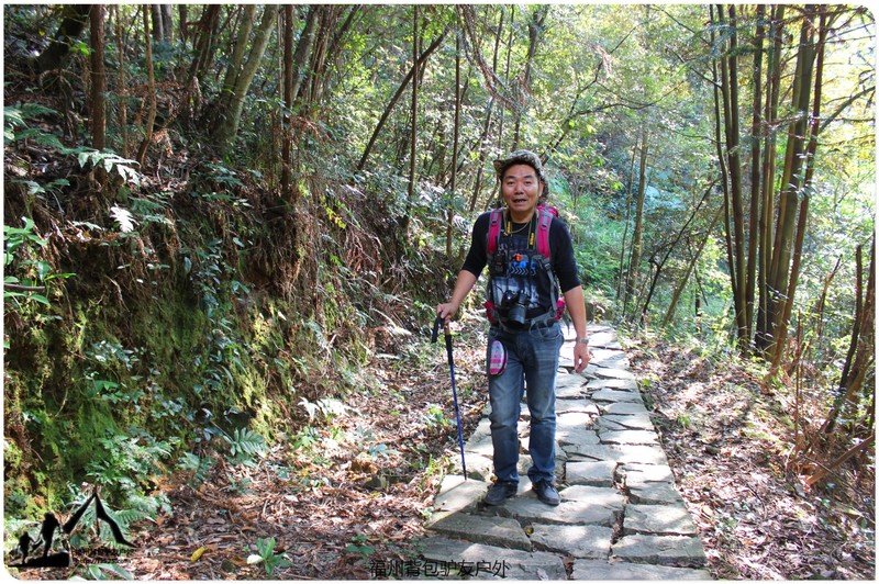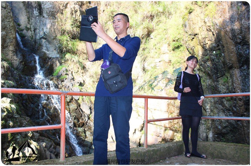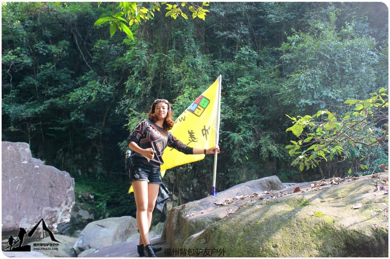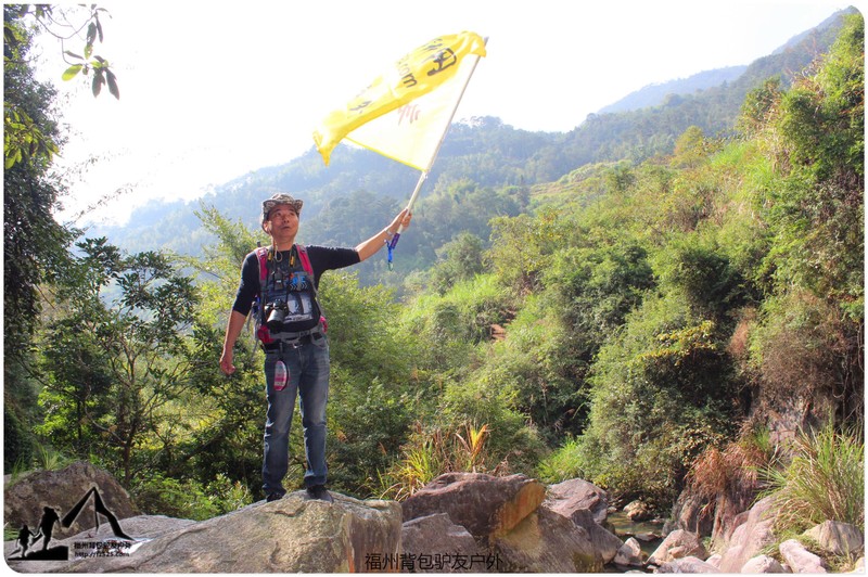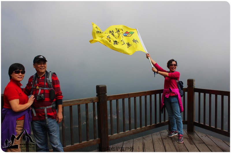 这里是雪山岩栈道路口出,老猫他们就喜欢围着大旗子一起拍照留影,说是给我做广告,而且还是免费得,嘻嘻!