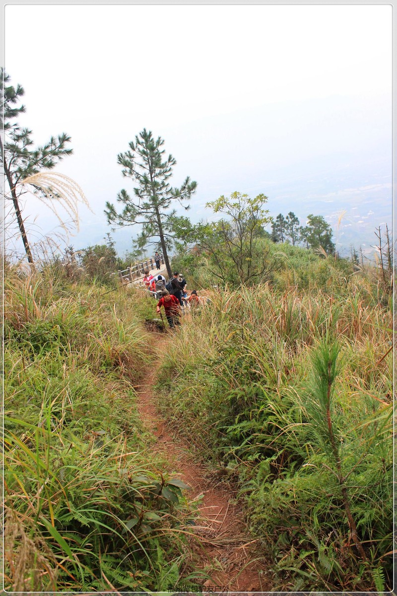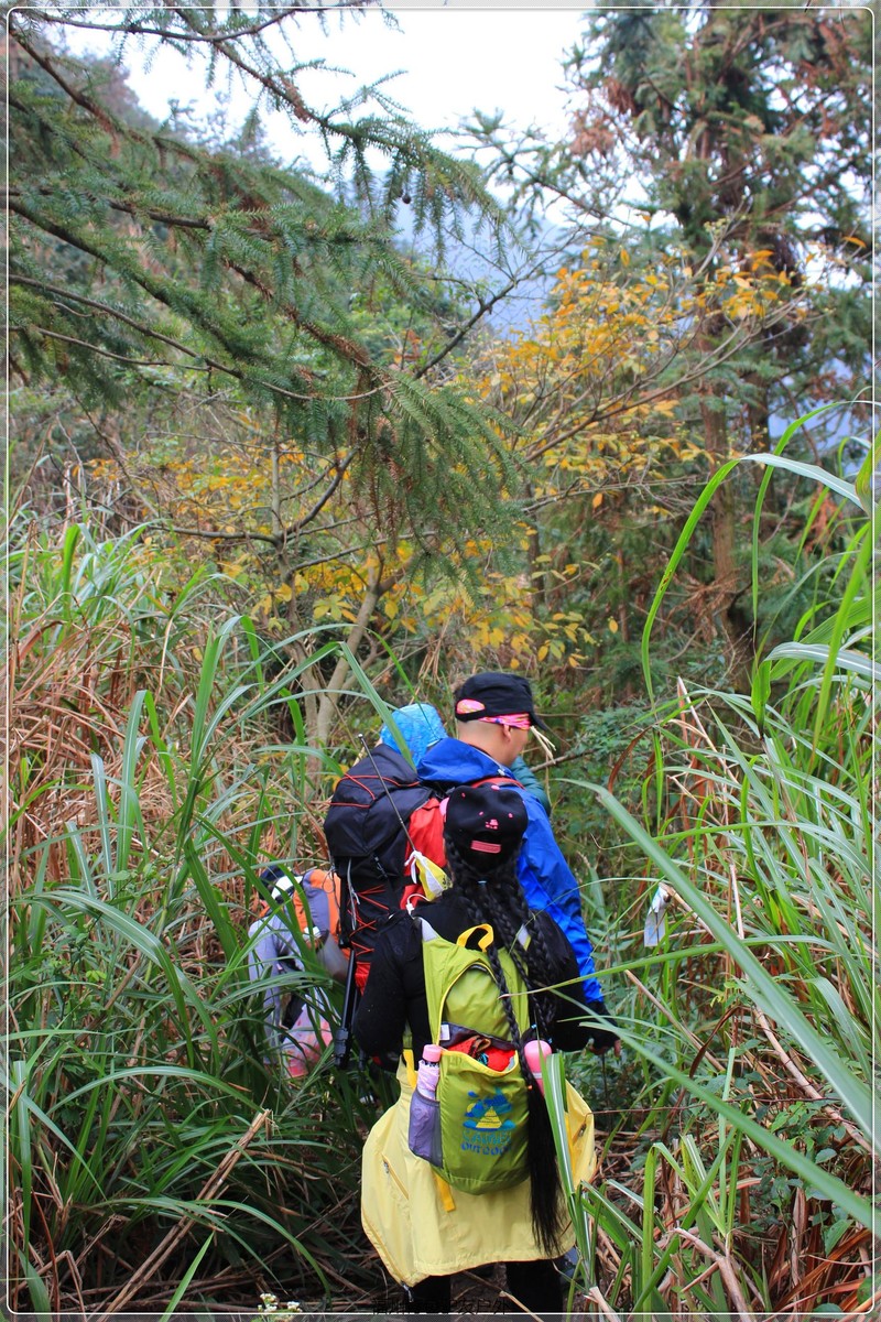 吃好喝好准备开拔了,这里已经到了正在修建石阶栈道的尽头了,接下去就是要塔山脊钻草丛