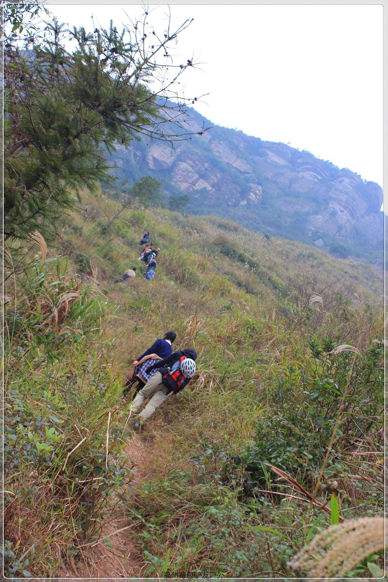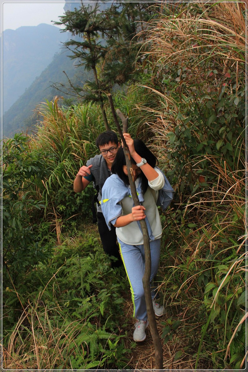 好陡耶!手脚并用嘛!手上的方巾是今天活动配发的,可擦汗、挡风、束发等多种用途